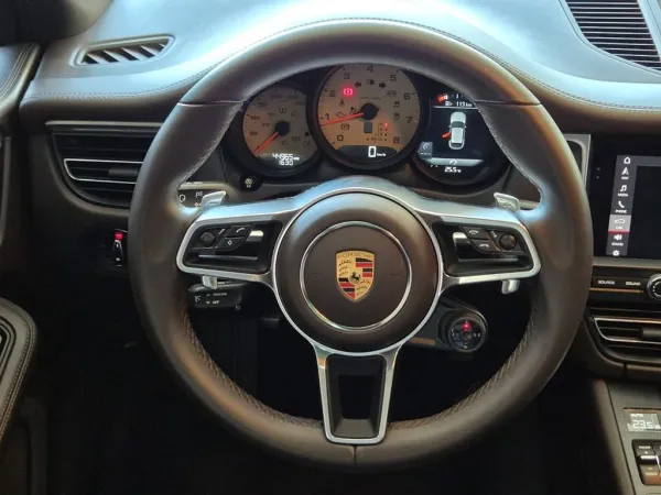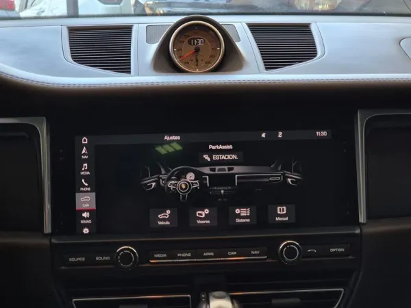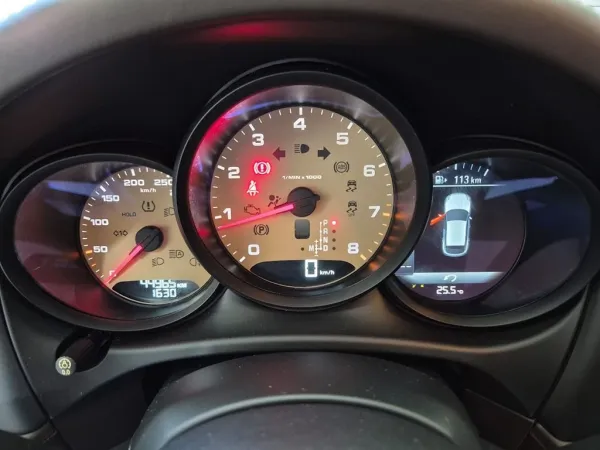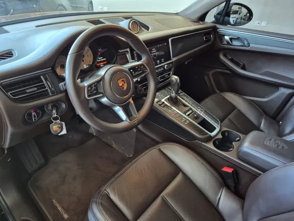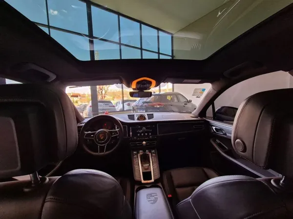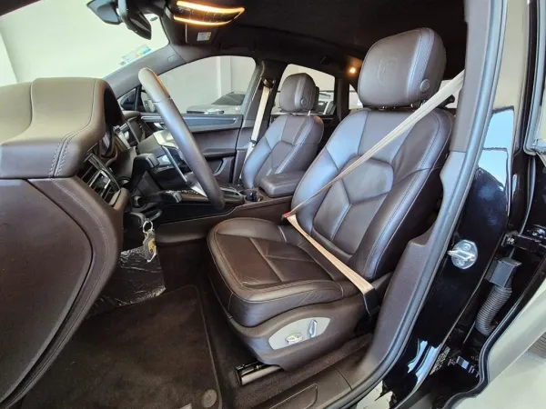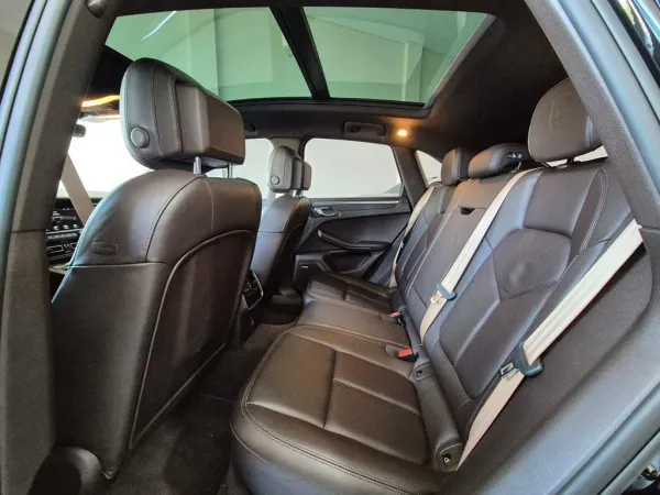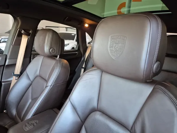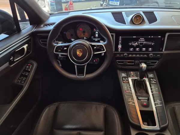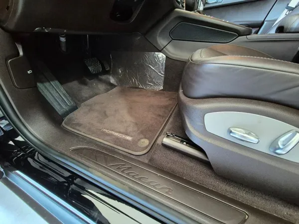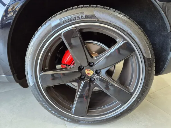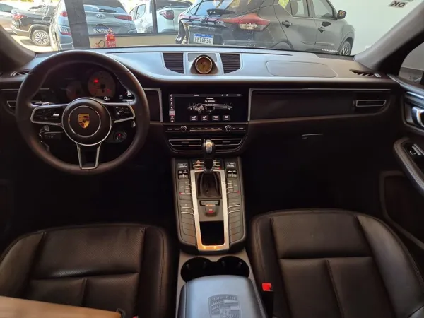 Sport Chrono, interior full couro, emblemas Porsche no encosto de cabeça e apoio de braço, rodas aro 21, cintos, fundo de painel e relógio na mesma cor.